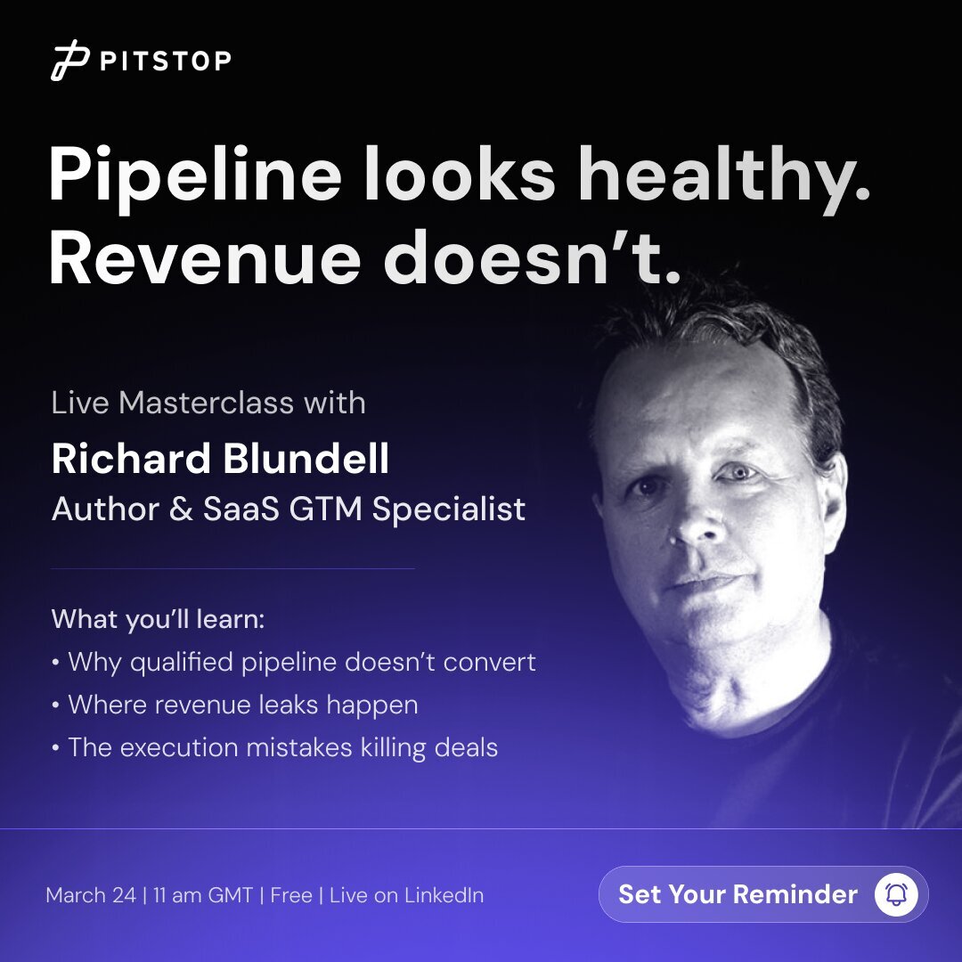 Turning Pipeline into Revenue features Richard Blundell, author of The Go to Market Handbook for B2B SaaS Leaders. Richard will share practical frameworks for diagnosing where pipeline converts and where it dies, with a specific focus on execution quality as the hidden variable most teams observe but fail to manage.
